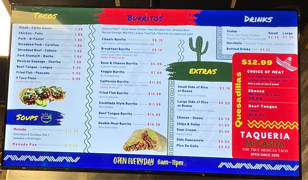 Taqueria Mi Casita, a Mexican restaurant located in Chandler, AZ, offers a diverse menu with options for every taste. From Bean n Cheese Burros to Fish Tacos, the food is known for its freshness and flavor. Customers rave about the generous portion sizes, especially the signature burritos which are described as filling and delicious. The casual and welcoming atmosphere adds to the dining experience, making it a popular spot for locals and visitors alike. With options for takeout, delivery, and catering, Taqueria Mi Casita caters to a wide range of preferences. Whether you're in the mood for a salad or a hearty burrito, this place has something for everyone. Overall, the combination of authentic Mexican flavors, friendly service, and cozy ambiance makes Taqueria Mi Casita a must-visit for food lovers.